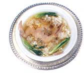 水发白木耳洗净剖块,放入沸水锅中氽一下,也放入汤碗中,再放入水发陈皮。