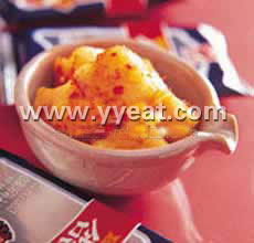 (2)将调味料(2)加入上述白萝蔔方块中拌匀腌制入味,放入冰箱冷藏一天即可食用,约可保存1週。