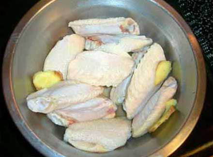 鸡翼先用少许胡椒粉,米酒,数片姜腌约半至一小时。