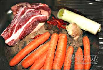 又煮了很长时间以后,这时候牛肉马上就熟了,把胡罗卜块到进去同煮,这时候在放盐,提前放盐,牛肉会紧缩,不容易熟