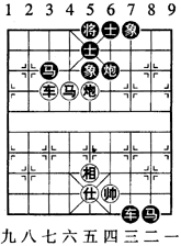 破解思路:黑方车炮卒大军压境,已成绝杀之势,红方见无回天 之力,索性放手一搏:炮控中路,使老将不能回槽,再大胆弃车,重炮作杀。