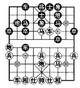 [小结]红方第11回合的马踩中卒,可算是典型的布局骗着。在附图局面下,由于子力犬牙交错,黑方一旦应付不当容易吃亏。前两种应着,黑方处理欠妥,结果陷入困局。(丙)变黑方去伪存真,并以轻灵的着法一举破解了红方骗着,获取了不错的形势。