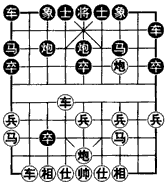 (棋例)1983年团体赛中,福建陈品泉对火车头体协的梁文斌,双方以仙人指路对小当头转顺手炮布局,弈至第12回合时的形势如图。现轮黑方走子,弈出妙手,兑车抢先,小卒顺手牵马