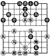 [棋例]1974年全国棋赛中,浙江苏文美对辽宁杨兴彪弈至第19回合时的形势如图。现该红方走子,从形势上分析,双方子力均等,各有一兵卒过河,红方炮相被捉,必失其一,黑方形势显强。目前形势,红方如逃炮,黑方吃相后叫将,再炮2进4打边兵,黑方较优势。红方经过仔细分析认为黑方也有难弱之处,黑方左马即是弱点,平车压住,明保炮暗捉马,是“以逸待劳”的妙手,扭转了形势。实战着法如下: