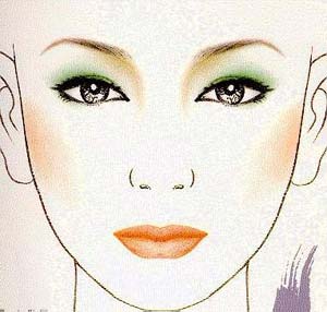 色彩搭配:蓝色配橙黄色、银白色,热烈而生动;绿色配鹅黄色、樱桃红,妆色显得热烈而妩媚;紫褐色配玫瑰红、橙黄色、蓝白色,妆色显得热烈而高雅;蓝色配玫瑰红色、鹅黄色、银色,妆色艳丽而高贵。