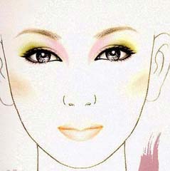 日妆运用的眼影色柔和,搭配简洁,常用的色彩有:浅咖啡色、深咖啡色、蓝灰色、紫罗兰色、珊瑚色、米白色、白色、粉白色、明黄色等。