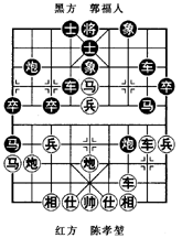 (局例2)如图,是1993年全国团体赛中,浙江陈孝?叶韵妹殴?福人战罢第20回合时的形势,