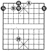 棋势与对策:黑方小卒剜心,车将或卒将要杀。红方必须用追的兵法,双马追将,以追取胜。