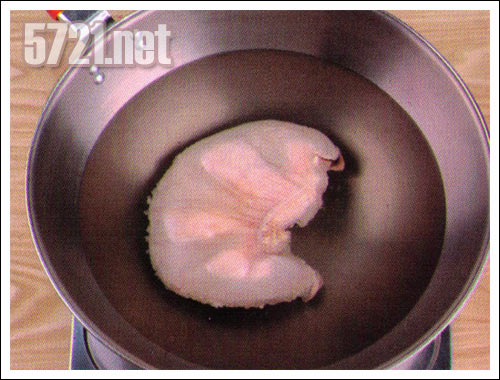 2、将猪肚放入开水锅中汆约2分钟,捞起备用。