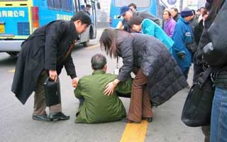 一外地老人倒地,无人问津,惟有这年轻女子俯身询问.有人劝说她不要多管闲事,但她依然俯身要去扶起老人.那么多人观看,却只有一位年轻的女子有好心肠?可以说,这个女人最美!