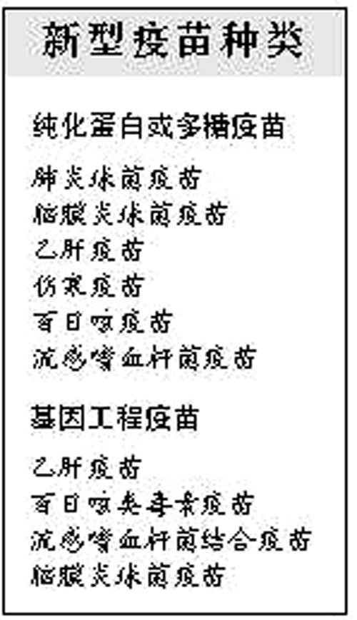 新型疫苗是应用基因工程技术和生物化学合成技术生产的疫苗,包括基因工程亚单位疫苗、重组疫苗、合成肽疫苗、基因工程载体疫苗、核酸疫苗和抗独特型抗体疫苗等。