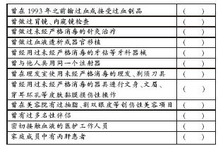 根据中国《丙型肝炎防治指南》定义的丙肝传播途径,专家制定出高危人群自我检测表。若有右表中症状,请在括号内划“√”。