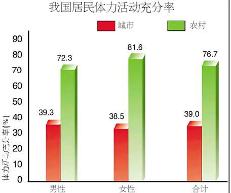 我国居民职业性体力活动水平为轻、中和重度的比例差不多各占1/3,半数以上的劳动者在工作中以坐和站立为主,行走时间很短。