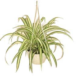 功效:可吸收室内80%以上的有害气体,吸收甲醛的能力超强。一般房间养l~2盆吊兰,空气中有毒气体即可吸收殆尽,故吊兰又有“绿色净化器”之美称。