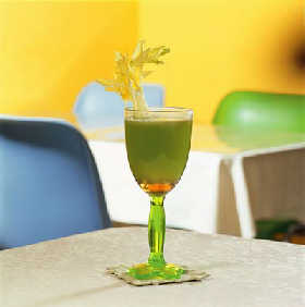 苹果、胡萝卜、菠菜和芹菜切成小块,加入牛奶、蜂蜜、少许冰块,用果汁机打碎,制成营养丰富的果蔬汁。