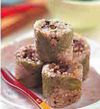 材料:茶梅10颗圆糯米600公克五榖粒300公克梅汁1/2碗新鲜茶叶适量
