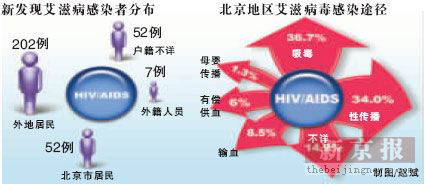 “北京的艾滋病传播仍以静脉吸毒、性传播为主,分别占感染者总数的36.7%和34%.”北京市卫生局疾控处副处长关宝英表示,吸毒和商业性服务令人担忧。