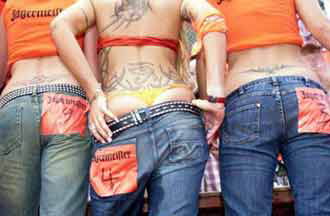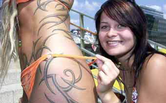 2004年8月8日,德国柏林,一场别开生面的比赛“德国小姐美臀刺青大赛”火热进行中。此项比赛的优胜者将免费飞往美国并参加演出秀,最特别的是此活动的举办者还计划组织50位臀部刺青的妙龄少女组成一道世界最长的臀部刺青。休闲 居 编 辑