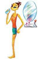 b、漱口时,臀部放松。重复a、b动作,可使臀部及大腿的线条更动人。