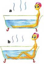 a、放一池温水,坐在浴缸中,将双腿伸直。