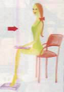 1、坐在椅子约1/3处,脚尖置于高起的平台上,脚跟尽量向下压。