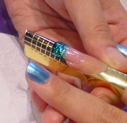 上模具。一会要用特殊的材料做水晶甲,所以要用模具塑型。
