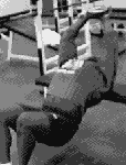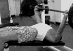 起始姿势 仰卧长凳 将杠铃放在乳头上方 动作过程 将杠铃垂直上举至两臂完全伸直,胸肌彻底收缩,静止一秒钟,慢慢下落。 呼吸方法 上举时吸气,下落时呼气。 注意要点 上举时背部、臀部要平贴凳面,两脚用劲下踏。