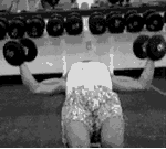 该动作直接锻炼胸肌,可采用平卧、上斜卧、下斜卧位置 起始姿势 仰卧长凳上,两手拳心相对,持哑铃;两臂向上直伸与地面垂直,两脚平踏地面。 动作过程 两手向两侧分开下落,两肘微屈,直到不能更低时止。静止一秒钟,让胸大肌完全伸展,然后将两臂从两侧向上,回合到开始位置。 呼吸方法 两臂拉开时吸气,回复时呼气。 注意要点 两手不要紧握。分臂时,背部肌肉要收紧。意念集中在胸大肌的收缩和伸展上。