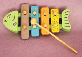 这是一款经典小木琴,不过可是经过改良的。看,它多像一条胖胖的彩色小鱼,敲击时还能发出1、2、3、4的音符声,也许他在敲敲打打中就会埋下爱音乐的种子呢。