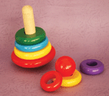 大小、色彩不同的五彩木环,让宝宝在认识大小的同时学会辨别不同颜色。