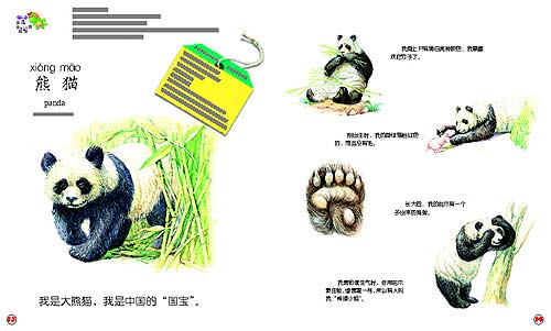 让1岁的宝宝通过看大图来认识一下熊猫。