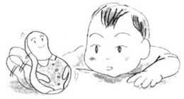 1让孩子抓着不倒翁,并让不倒翁躺下。