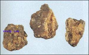 天然没药:表面呈黄棕色或红棕色的没药团块。