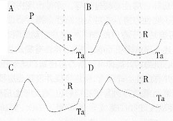 右房梗塞:P-Ta段Ⅰ、 Ⅱ、Ⅲ、avF、ⅴ1、ⅴ2 下降> 0.05mV,P-Ta段avR、avl上升>0.05mV。