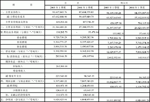 西南药业股份有限公司2005年第一季度报告(节录) 人气: 【字体:大 中 小】 发布时间:2003-11-04 09:06:06