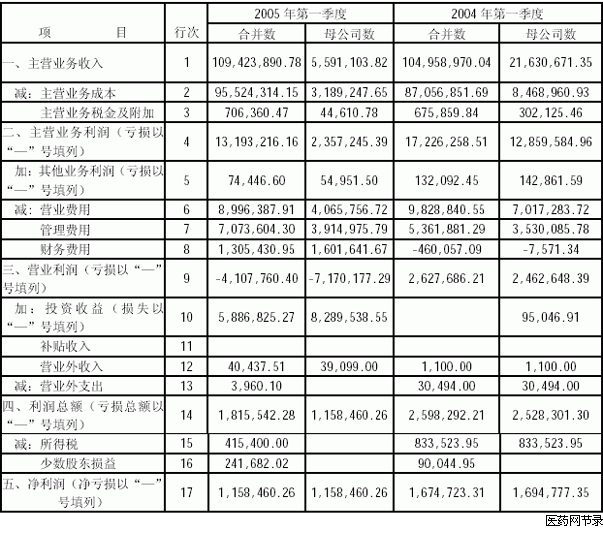详见《湖北潜江制药股份有限公司2005年第一季度报告》