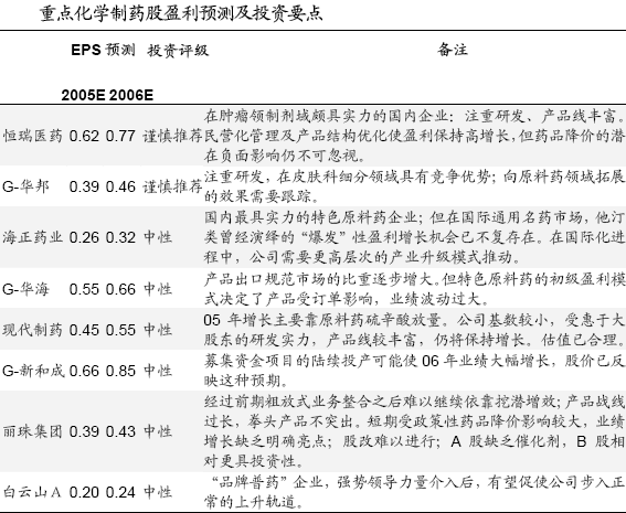 ●06年投资主线:“品牌中药”价值防御,关注“龙头生物”成长我们维持医药行业“中性”投资评级,建议关注品牌中药和生物制药子行业,建议继续回避医药商业和大宗化学原料药子行业。我们认为06年对医药板块的投资应主要围绕两条主线:品牌中药股+龙头生物制药股。
