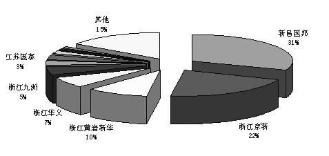 图1:2004年环丙沙星原料药主要出口企业的份额