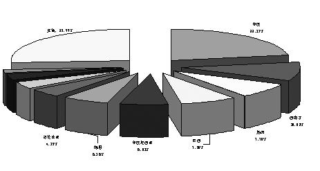 我国环丙沙星原料药出口目的国(地区)近70个。印度是我国最大的出口目的国,2004年采购量达188吨,占我国总出口量的22.17%;其他采购量较大的目的国有西班牙、越南、巴西等,前十位目的国共占74%的份额(如图2)。