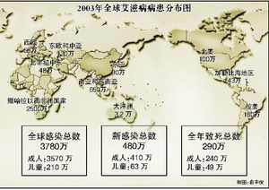 7月6日,联合国艾滋病联合规划署在伦敦发表了《2004年全球艾滋病报告》,该报告称去年共有近300万人死于艾滋病,约500万人去年感染了艾滋病病毒(HIV)。这是自从1981年艾滋病被发现以来,一年中增加最多的。其中亚洲的形势更不容乐观,是全球艾滋病增长速度最快的地区。尽管加大了防治力度,然而全球携带艾滋病病毒的患者已经达到了破纪录的3780万,撒哈拉沙漠以南的非洲地区依然是艾滋病流行最严重的地区。休 闲 居 编 辑