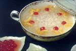 3.锅内倒入糖水、橘瓣、蛤士蟆烧开,倒入汤碗,放上红樱桃即成。