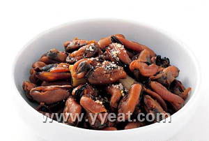 (2)牛肉切薄﹐并与红蛤蜊一起以佐料酱调味。