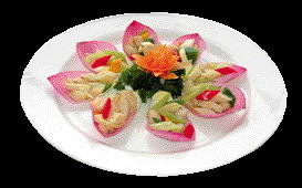 将莲藕、马蹄、菱角、茭笋、茨菇等“五秀”烹成小炒,放在荷花瓣上,口感清甜爽口,卖相精美,据说“五秀”是西关泮塘特产,虽是普通农家蔬果,但一年中五种材料很难聚在一起,要想吃到还真不容易。