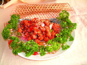 制法:将猪精肉切块,放入调料腌制1~2小时;将腌好的猪肉放入油锅炸熟,放调料炒熟装盘即可。