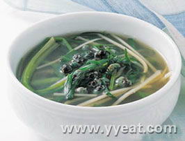 (2) 在煮天螺的汤里加淘米水冲大酱﹑辣椒酱再煮。