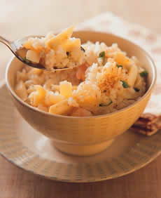 (3)最后打开盖子,加入汆烫过的虾仁、葱花及调味料B拌匀再加盖焖约2~3分钟取出后即可食用。