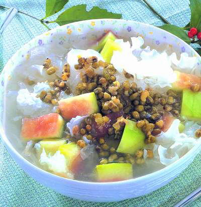 “三豆”保健功能很多。绿豆性味甘寒,具有清热解暑之功效;赤豆性味甘酸,功效为清热利水、散血消肿,可治腹部胀满、脚气浮肿、小便不利等。对夏天皮肤常发的疮疡肿疖等有较强的排毒消肿作用;黑大豆性味甘寒、微苦,功效为解毒、散热、除烦,可治伤风感冒、夏季头痛、鼻塞不通等,也是夏令消暑清热之佳品。三味共用效果更佳。