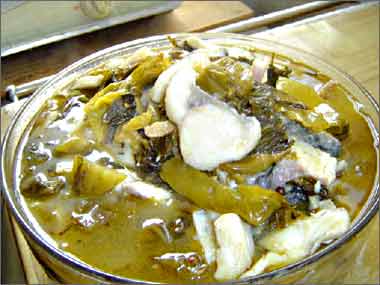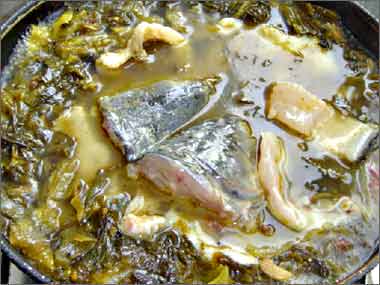 15、放入盐、胡椒粉、花椒粉、味精等调味,一锅美味的酴菜鱼就大功告成了!