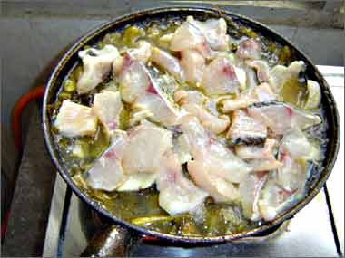 14、下入其他的鱼片,大火2-3分钟~ 如果不喜欢鱼头,也可以不要鱼头的,省略...