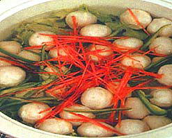福州鱼丸也很有名气,是用鳗鱼、鲨鱼或其它鱼的肉在臼中捣成茸,加淀粉搅拌均匀,再包上瘦肉或虾肉等馅制成的,选料精细,制作考究,皮薄均匀,色泽洁白晶亮,食之滑润清脆,汤汁鲜香。
